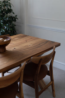 Handcrafted from solid wood, the Eva Dining Table in Natural Walnut, size 160 × 80 cm with straight edges, is suitable for 6 seater