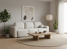 Discover the Elara Sofa Bed, where contemporary elegance meets exceptional functionality. Designed for modern living, this premium three-seater sofa measures cm, offering a spacious and sophisticated silhouette that fits perfectly into any refined interior. It effortlessly transforms into a generous cm sleeping area, providing an extra-wide surface for superior comfort and a restful night's sleep.